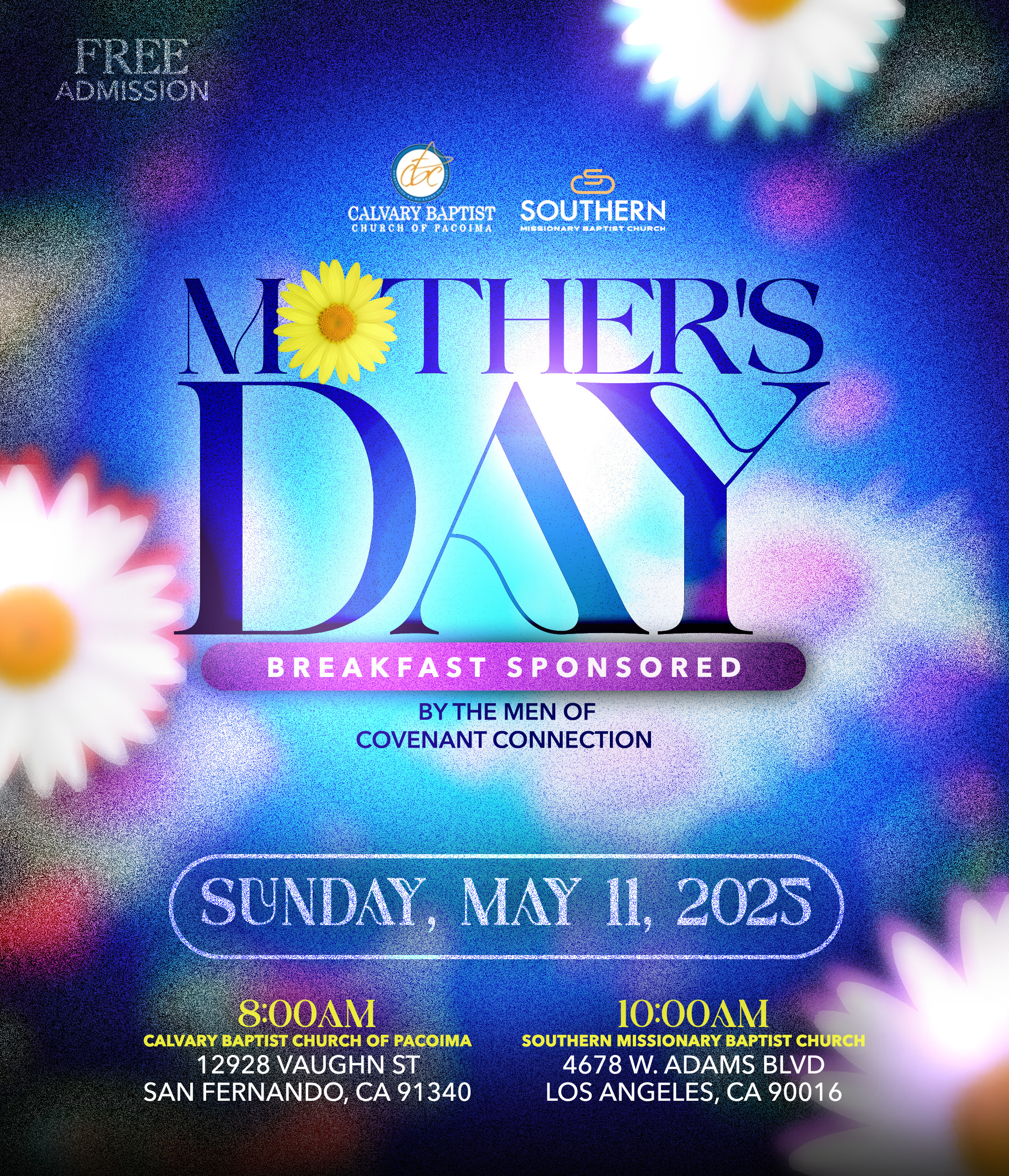 Mother’s Day Breakfast + Add to Google Calendar + iCal export Date May 11 2025 Expired! Time 8:00 am - 9:00 am Location Calvary Baptist Church of Pacoima 12928 Vaughn Street, San Fernando, CA 91340 Share this event
