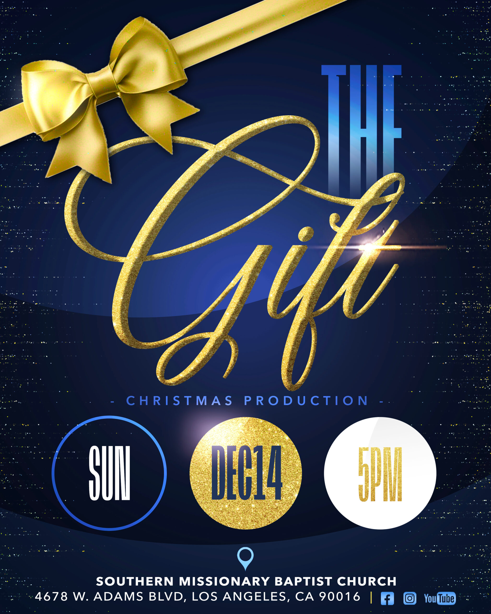 On Sunday, December 14th, at 5PM, meet us at the Southern campus (4678 Adams Blvd., Los Angeles, CA 90016) for “The Gift!” This dynamic multi-generational Christmas production will inspire your heart with sentimental songs, storytelling, and stirring moments that remind us that the greatest gift ever given came wrapped in love, Jesus Christ.